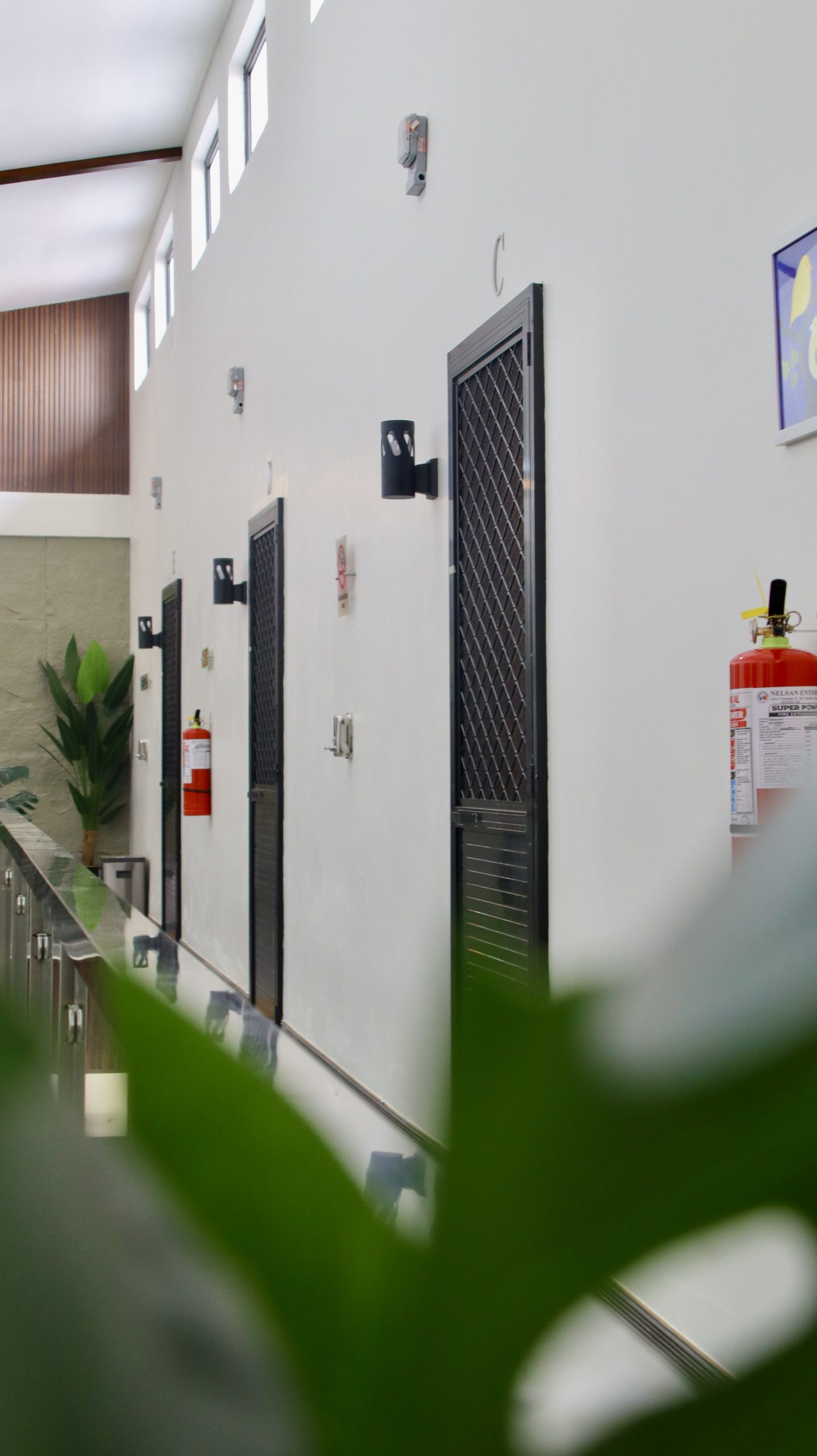 Bright hallways, clean surroundings, and clear emergency routes.